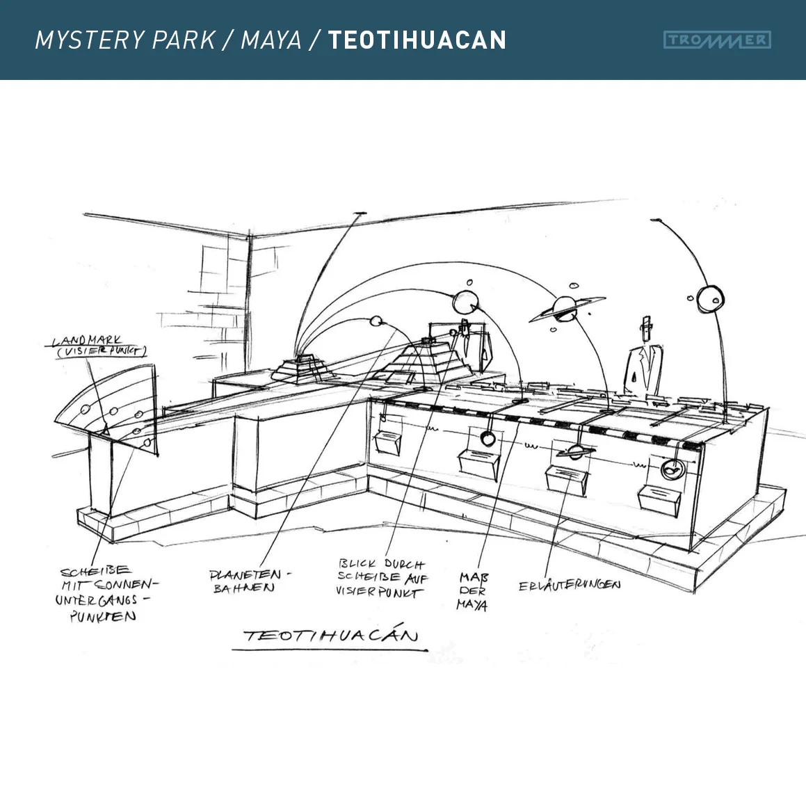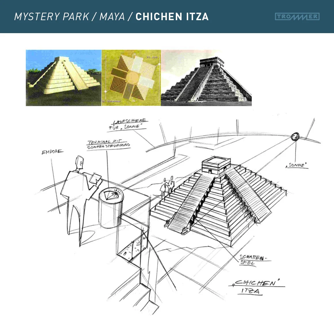 Über die Eventagentur Facts+Fiction aus Köln wurde ich beauftragt, ein Konzept für Erich von Dänikens Mystery Park zu erstellen, insbesondere den Bereich “Maya”. Es ging darum, von Dänikens spezielle Theorien anschaulich, unterhaltsam und beeindruckend den Erlebnisparkbesuchern zu präsentieren – eine Mischung aus Mystery und History. Die Präsentation in Interlaken in der Schweiz kommentierte E.v.D spontan mit den Worten: “Das Beste, was ich je gesehen habe”.